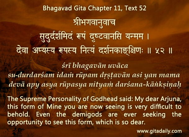 The Bhagavad-gita (11.52) states that the form of Krishna is very difficult to see. This may raise the question, “But wasn’t he seen by all the people present when he performed his pastimes? Wasn’t seeing him easy for them?”