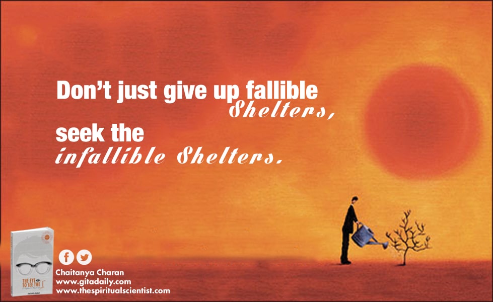 Unfortunately, as long as we have worldly shelters, we often get lulled into a sense of complacency and don’t seek Krishna’s shelter. Therefore, some spiritual paths urge us to renounce worldly shelters so as to impel us to seek some higher shelter, culminating in Krishna’s shelter.