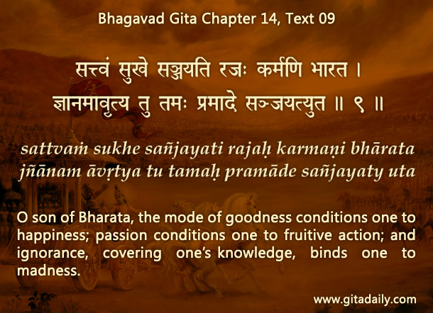 At first glance, rajo-guna seems better than tamo-guna and sattva-guna seems better still. And that’s true – but only till the hangover hits. Though our life is better in the higher modes, still all three gunas bind us to material existence, as the Bhagavad-gita (14.09) warns.
