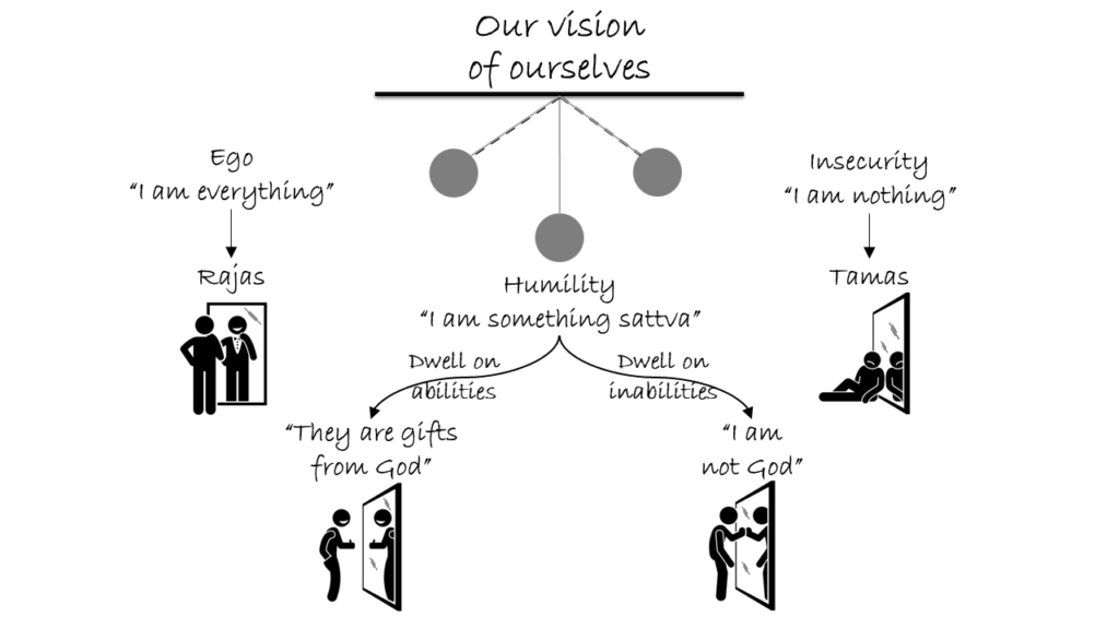 Thus, dwelling on our abilities can give us confidence, avoiding the negativity of insecurity. And dwelling on our inabilities can ensure that our confidence does not grow into overconfidence, protecting us from the pitfall of ego or arrogance.