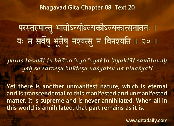The Bhagavad-gita informs us about the spiritual world, which is the ultimate destination for us as souls. This spiritual world is sometimes shown to be situated beyond a particular boundary till which the material world extends. Such depiction may make us believe that the spiritual world is in geographical contiguity to the material world, just as, say, Canada is above the US in the world map.