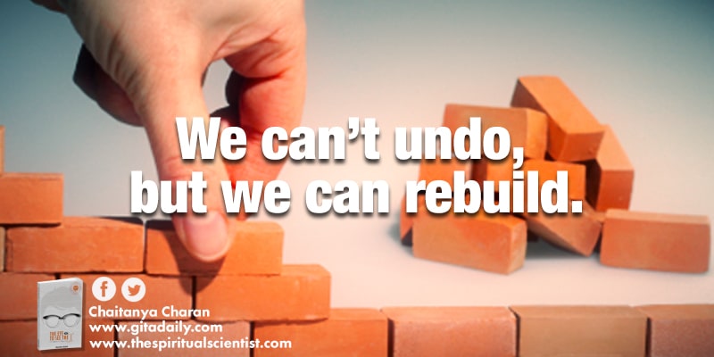 By contemplating the gravity of our actions, we can choose soberly. But sobriety can degenerate into negativity if we misconceive that nothing is changeable. A burnt mansion can’t be unburnt, but it can be rebuild. Similarly, harmful impressions can’t be erased, but they can be buried. By making morally healthy choices, we can overwrite our consciousness with positive impressions that will impel us towards uplifting actions.