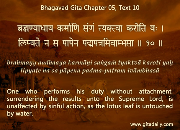 At the Gita’s start, Arjuna wanted to give up material life, for he feared that his material duties would cause him karmic bondage. In responding to his concern, the Gita stresses that we can never give up all action (03.05) and that without acting dutifully, we can’t even maintain our bodies (03.08).