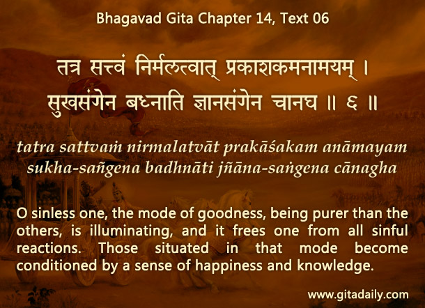 Pertinently, the Bhagavad-gita (14.06) indicates that the mode of goodness can bind us with knowledge – by making us complacent that we are more knowledgeable than others, it can take away our impetus to strive for spiritual awareness.